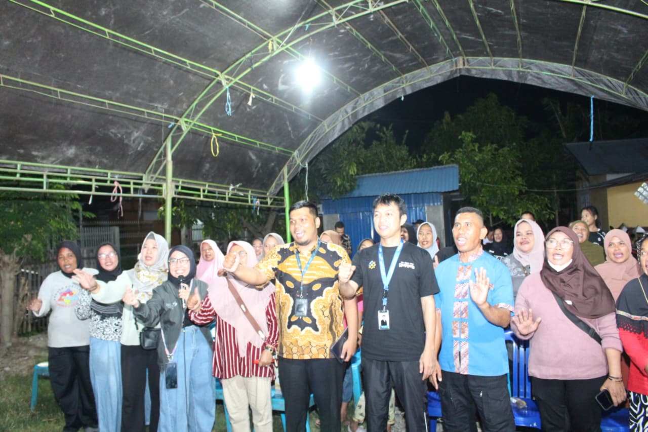 Suasana malam itu terasa akrab dan hangat di bawah tenda sederhana di Desa Kalukubula, Kabupaten Sigi, Jumat (31/10/2025). Lampu putih yang menggantung di atas kepala menerangi deretan kursi plastik biru yang dipenuhi warga sebagian besar “emak-emak” berkerudung yang tampak antusias mengikuti jalannya acara.