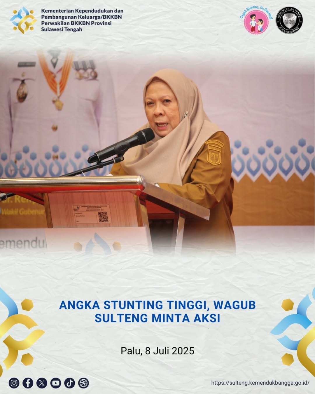 Sorotan tajam Wakil Gubernur juga tertuju pada prevalensi stunting di Sulawesi Tengah yang menurut SSGI 2024 masih berada pada angka 26,1%, lebih tinggi dari rata-rata nasional yang sudah turun ke 19,8%.