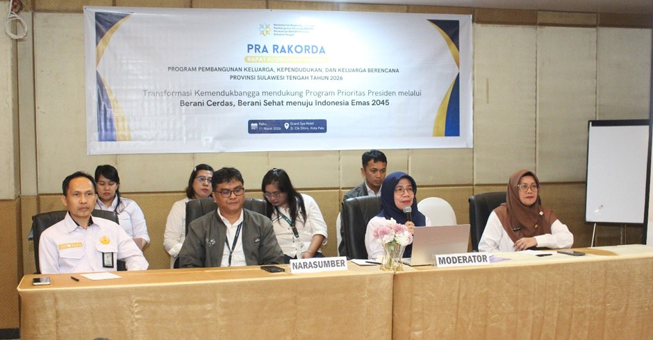 Hal ini disampaikan dalam Pra Rapat Koordinasi Daerah (Rakorda) Program Bangga Kencana Provinsi Sulawesi Tengah yang diikuti OPD KB dari 13 kabupaten/kota se-Sulteng di Grand The Sya Hotel, Rabu (11/3/2026).