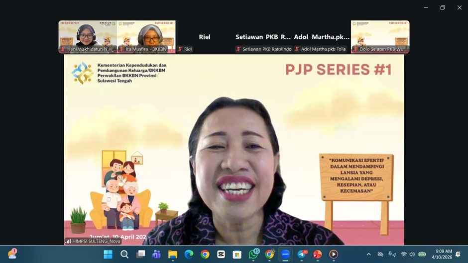 Perwakilan BKKBN Provinsi Sulawesi Tengah melaksanakan kegiatan Orientasi Pendampingan Perawatan Jangka Panjang Berbasis Keluarga (PJP Series #1) secara virtual pada Jumat (10/4/2026). Kegiatan ini diikuti oleh pengelola program BKL, PKB, serta kader BKL se-Sulawesi Tengah, dan juga disiarkan melalui platform YouTube.