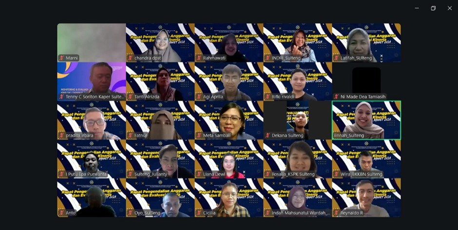 Palu,17 April 2026, Tidak harus berada di satu ruangan, Perwakilan BKKBN Provinsi Sulawesi Tengah melaksanakan Rapat Pengendalian Anggaran dan Evaluasi Kinerja sampai dengan tanggal 16 April 2026 secara daring. Kegiatan ini bertujuan untuk memantau capaian realisasi anggaran dan kinerja program, serta mengidentifikasi langkah-langkah strategis dalam rangka peningkatan efektivitas pelaksanaan kegiatan.