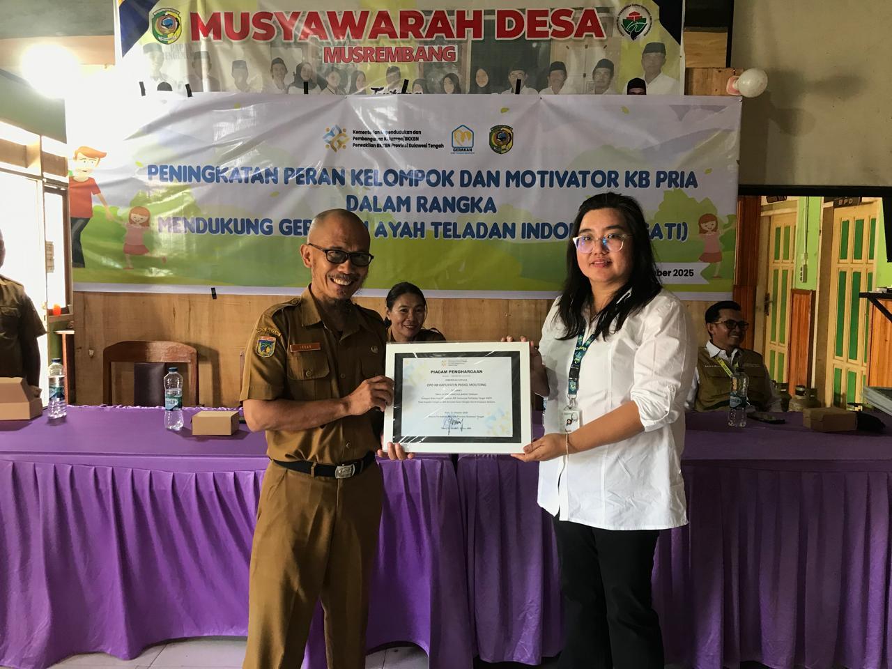 Selain itu, dilakukan pula penyerahan piagam penghargaan secara simbolis kepada kelompok yang aktif mendukung pelaksanaan Hari Kontrasepsi Sedunia tingkat Provinsi Sulawesi Tengah, sebagai bentuk apresiasi atas kontribusi dalam program KB dan penguatan peran ayah di masyarakat.